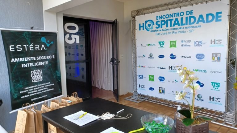 ito conhecimento e de palestras com temas muito importantes os participantes não apenas escutaram sobre Hospitalidade. Eles vivenciaram. O evento contou com a participação de robôs concierges que os recepcionaram, ofereceram balas e desejaram bom evento. Os robôs concierges são soluções muito interessantes para o auxílio do atendimento do cliente de saúde. Outra ação de hospitalidade interessante foi realizada pela Estera Química do Brasil. Todo o ambiente foi higienizado com o Estera Power Plus proporcionando segurança e conforto para os participantes.